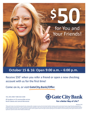 Receive $50* when you refer a friend or open a new checking account with us for the first time!