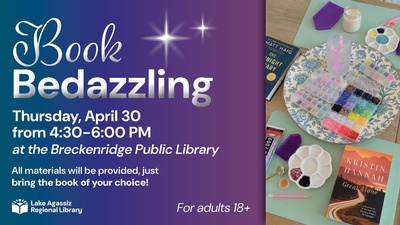 Join us for our Book Bedazzling event! Bring in a book to decorate with some sparkle. Whether it's your all-time favorite read, a gift for the book lover in your life, or just a title you think would look extra fun with some bling, come add some shine at the library!