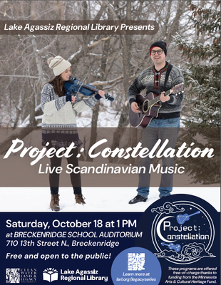 Project: Constellation Live Scandinavian Music Project: Constellation Live Scandinavian Music Images Gallery Image × Project: Constellation Live Scandinav... Set a Reminder Enter your email address below to receive a reminder message. Email address Select the amount of Days before the event -- Select Days Before Event -- 1 Day 2 Days 3 Days 1 Week Captcha Validation Please complete the Captcha Submit Date and Time Saturday Oct 18, 2025 1:00 PM - 3:00 PM CDT Saturday October 18th 1 pm Location Breckenridge School Auditorium Set a Reminder Enter your email address below to receive a reminder message. Email address Select the amount of Days before the event -- Select Days Before Event -- 1 Day 2 Days 3 Days 1 Week Captcha Validation Please complete the Captcha Submit Share × Print Email Add to Calendar Facebook Twitter LinkedIn Tell a Friend × Select Calendar Type × Google Yahoo iCal (Outlook, Apple, or other)